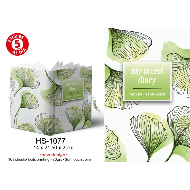 DIARIO A5 168H.C/CANDADO LEAVES IN THE WIND