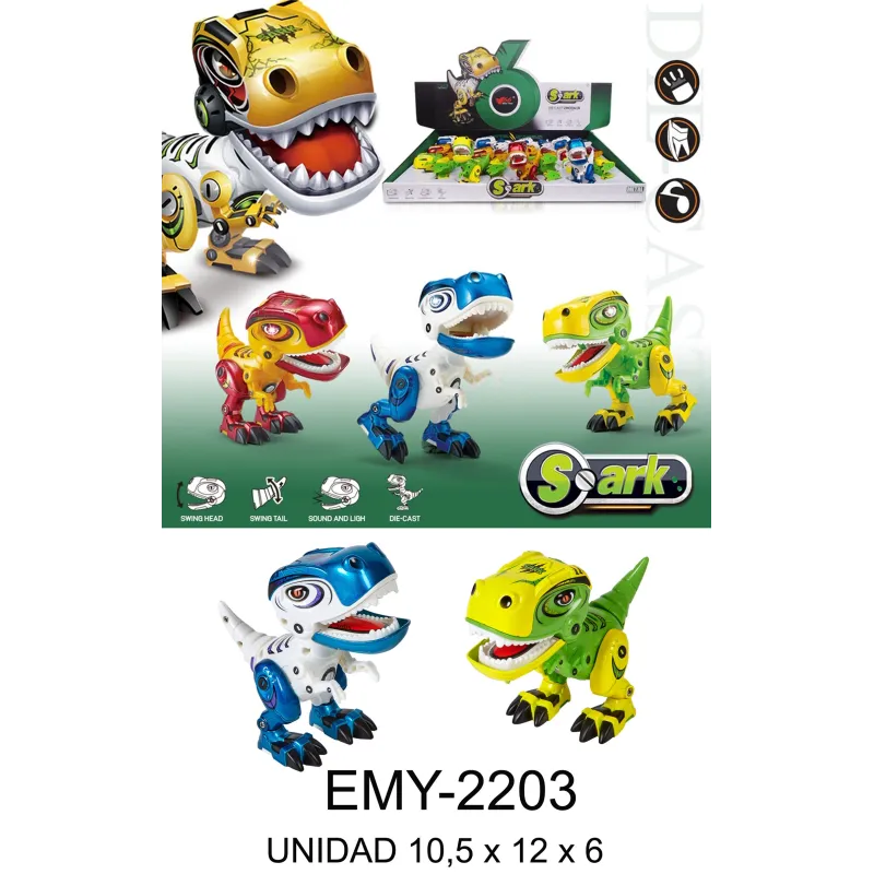 EXP. 12 DINOS METAL CON LUZ Y SONIDO,3 COL.SURT.