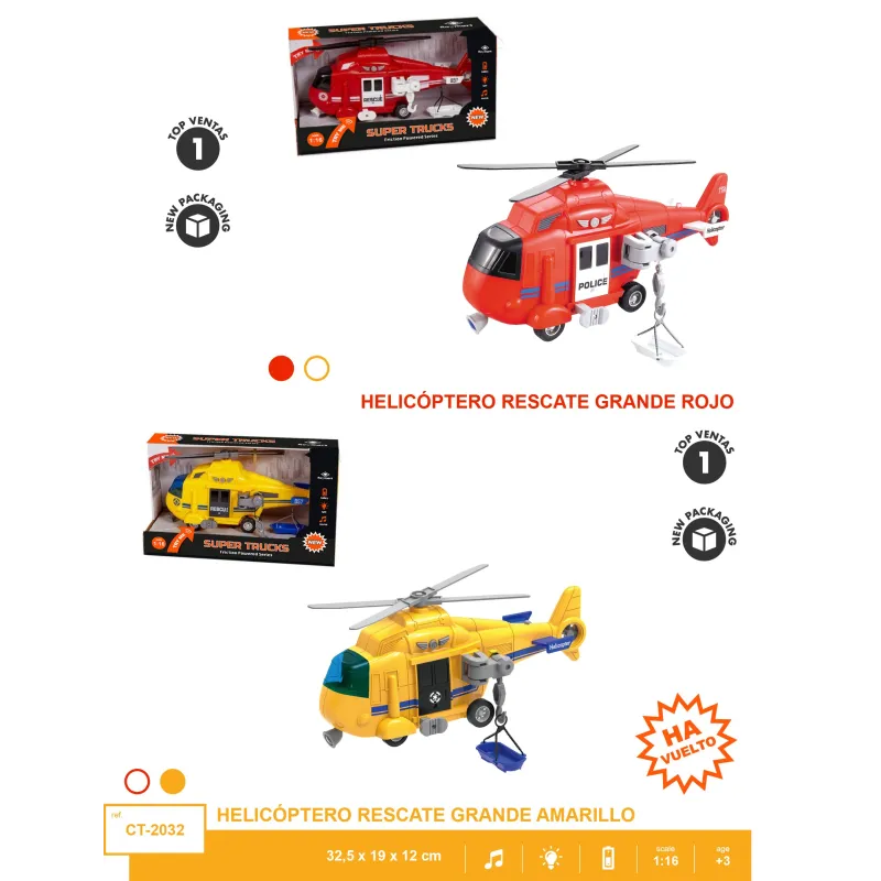 HELICOPTERO ESCALA 1:16 CON LUZ Y SONIDO,2 COLORES