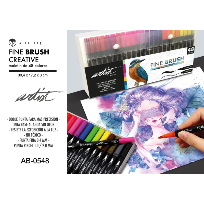MALETIN 48 ROTULADORES FINE BRUSH CREATIVE 2 PUNTA