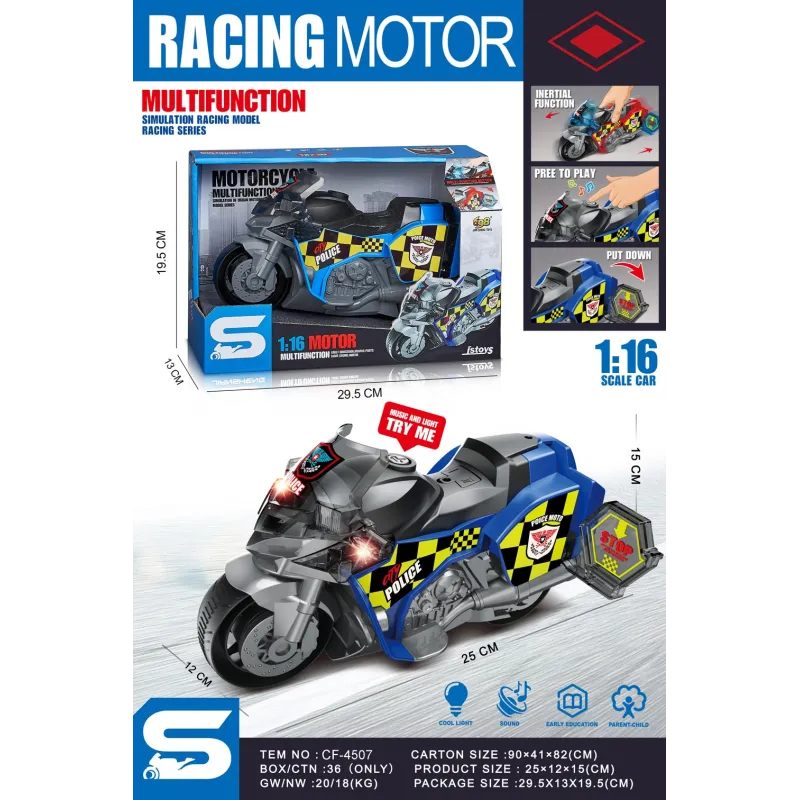 MOTO MULTIFUNCION ESCALA 1:16 LUZ Y SONIDO POLICIA