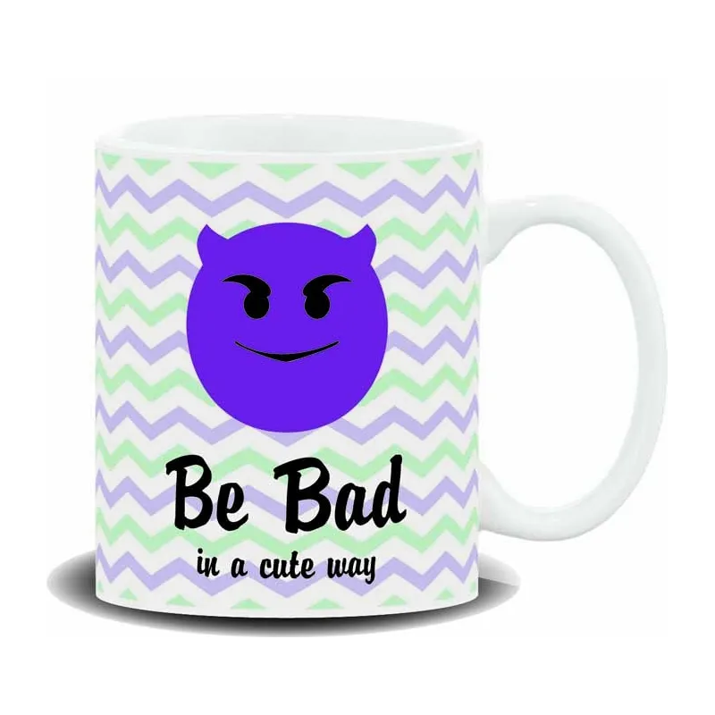 MUG CON MENSAJE EMOTICON,BE BAD.... SIMPATICO....