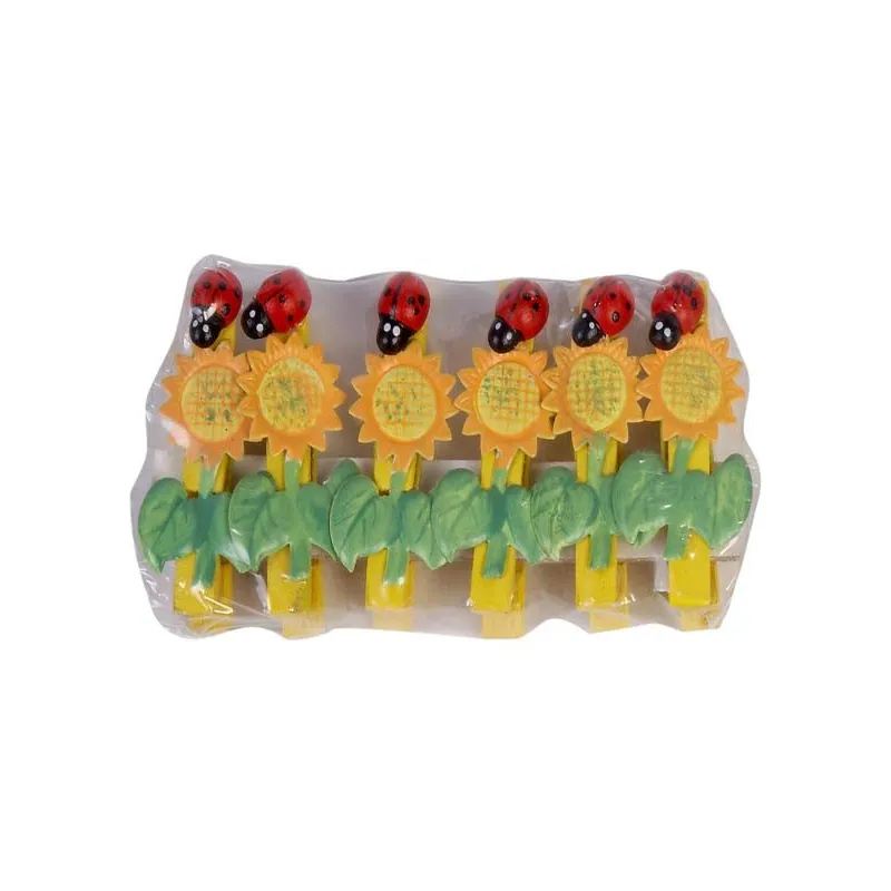 PACK DE 6 PINZAS AMARILLAS C/GIRASOL Y MARIQUITA