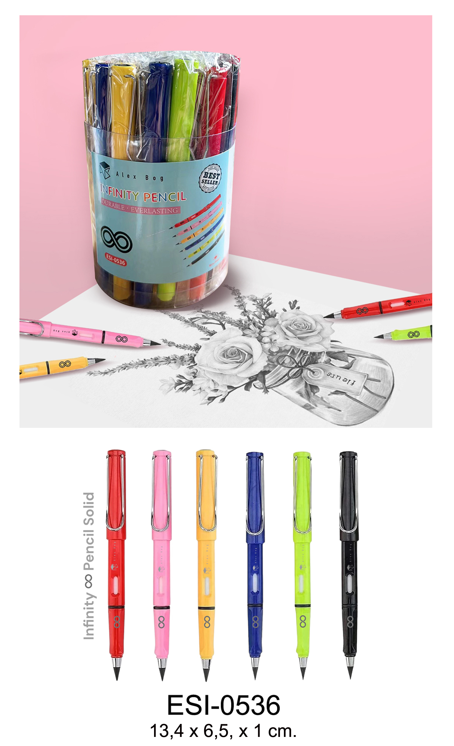 BOTE PVC 30 LAPICES INFINITOS 6 COLORES PASTEL