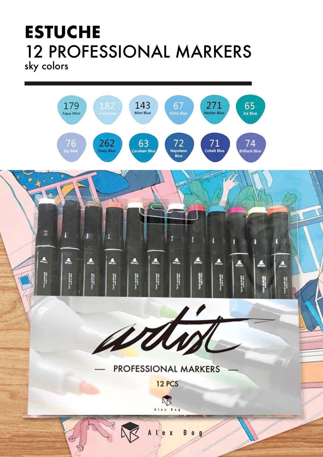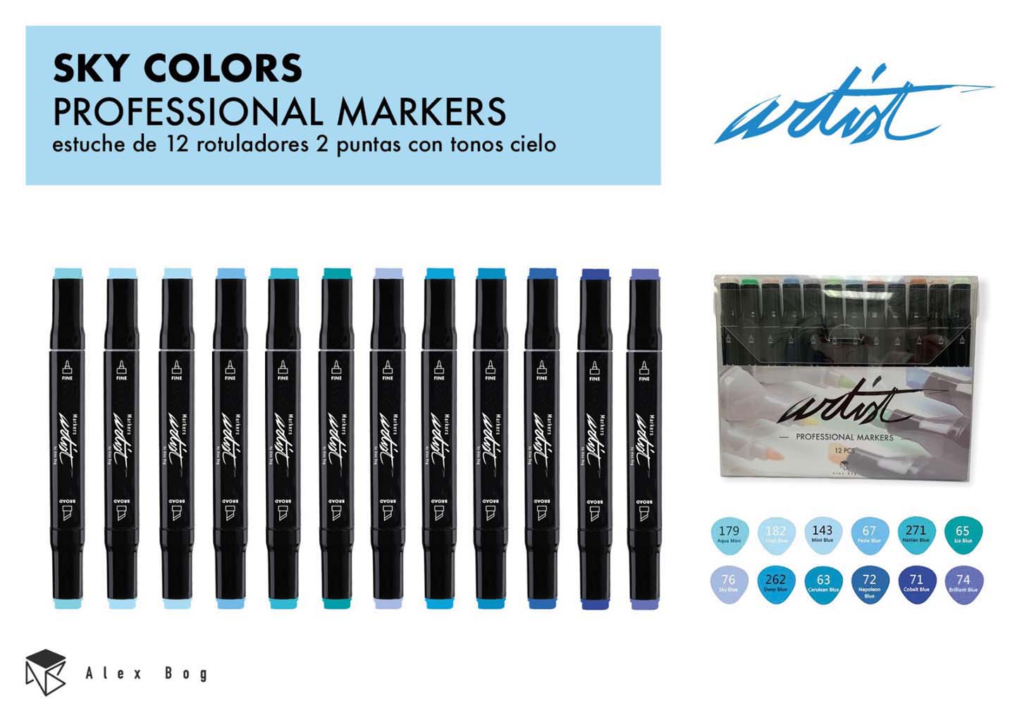 ESTUCHE GAMA ARTIST 12 BLUE COLORS