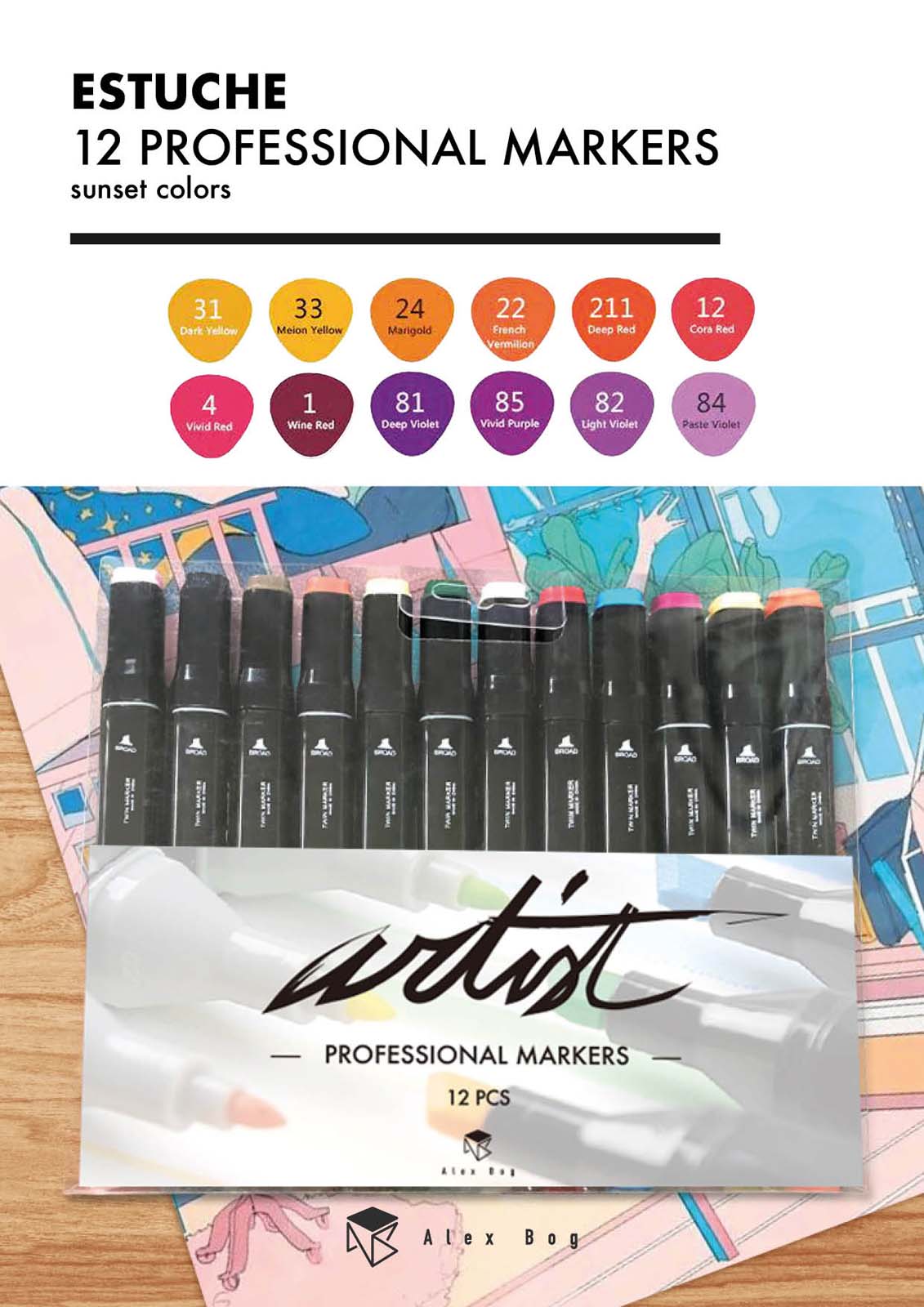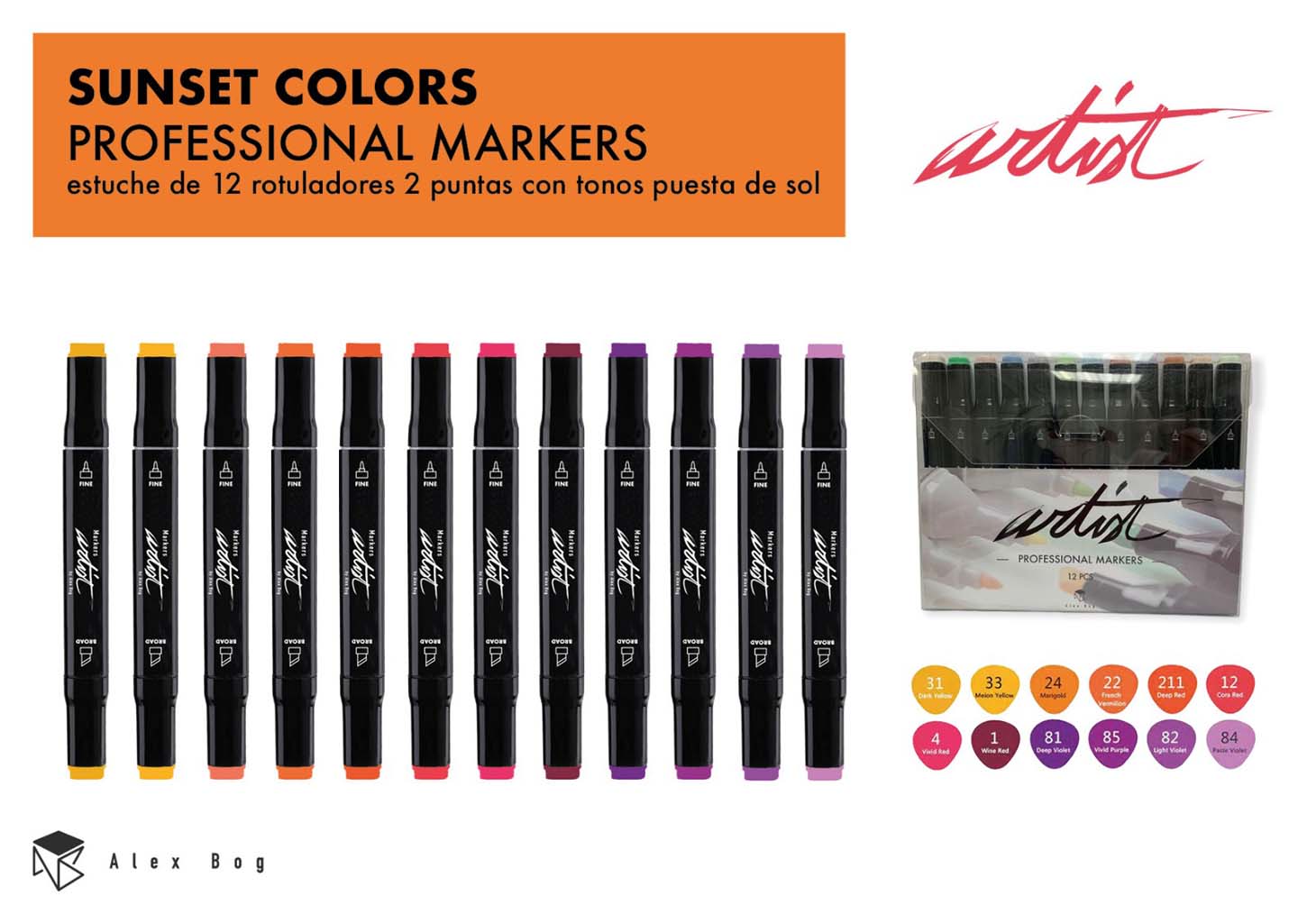 ESTUCHE GAMA ARTIST 12 ORANGE,RED,VIOLET COLORS