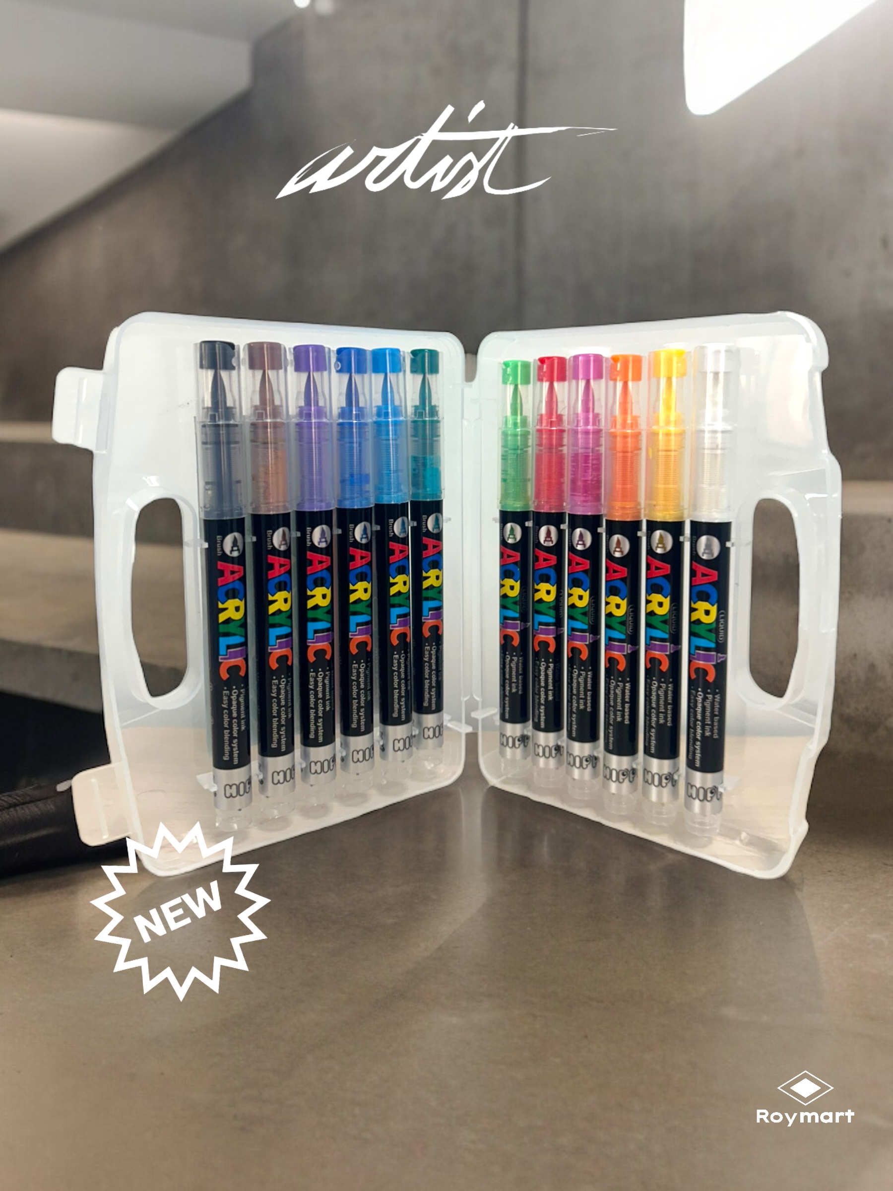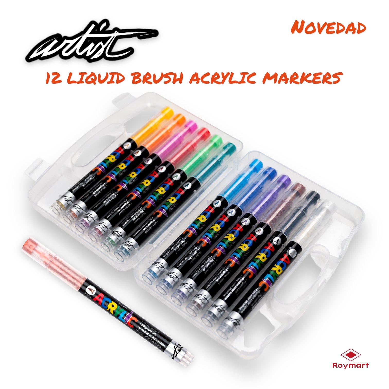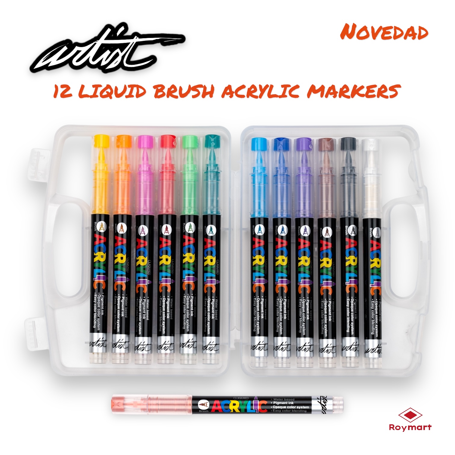 ESTUCHE MALETIN ACRILICOS REAL BRUSH ,12 COLORES