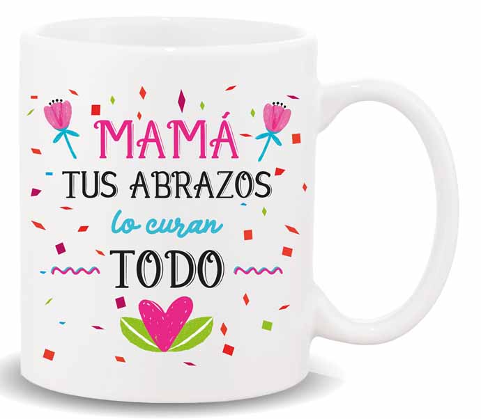 MUG CON MENSAJE , MAMA TUS ABRAZOS….