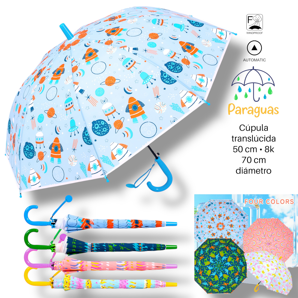 PARAGUAS AUTOMATICO CLASICO ,3 COLORES SOLIDOS