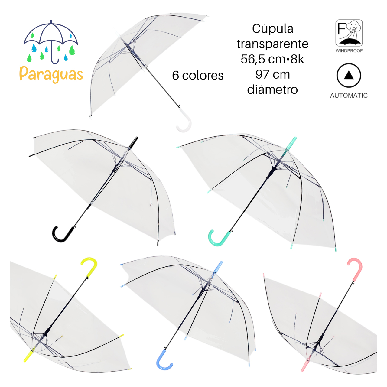 PARAGUAS AUTOMATICO JUVENIL 3 COLORES TRANSP.