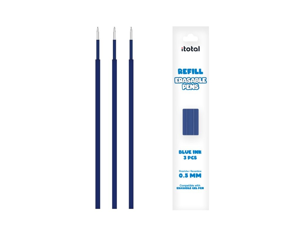 Set de 3 piezas de Recambio de Tinta Borrable para boligrafos con tapa Azul