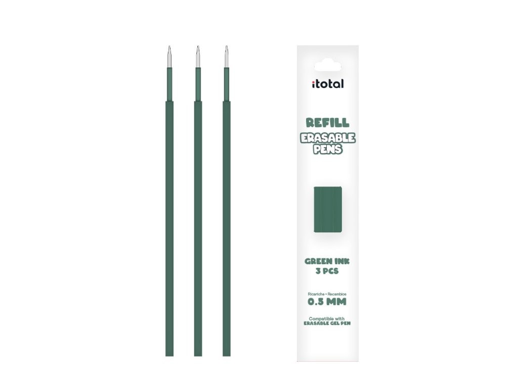 Set de 3 piezas de Recambio de Tinta Borrable para boligrafos con tapa Verde